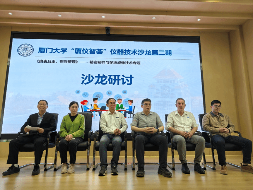 沙龙研讨环节,各位报告人围绕“复杂体系下的精密制样挑战与多维表征可靠性”这一核心主题,结合自身深耕领域的实践经验与各方参会人员展开深度对话。现场氛围热烈,与会人员就绝缘材料分析中的电荷干扰抑制、复杂情况下信号真伪辨析、SIMS与XPS在科学研究中的互补选型以及如何从扎实的制样基础迈向宏大的科学突破等具体技术与宏观思考进行了火花碰撞。大家一致认为,先进的成像离不开精密制样,关键技术突破始于方寸之间的精雕细琢。“厦仪智荟”作为厦门大学“厦仪”品牌矩阵的重要组成部分,未来将持续围绕不同仪器集群与应用场景开展活动,促进技术交流与思想碰撞,实现“大仪聚智,融创未来”。
