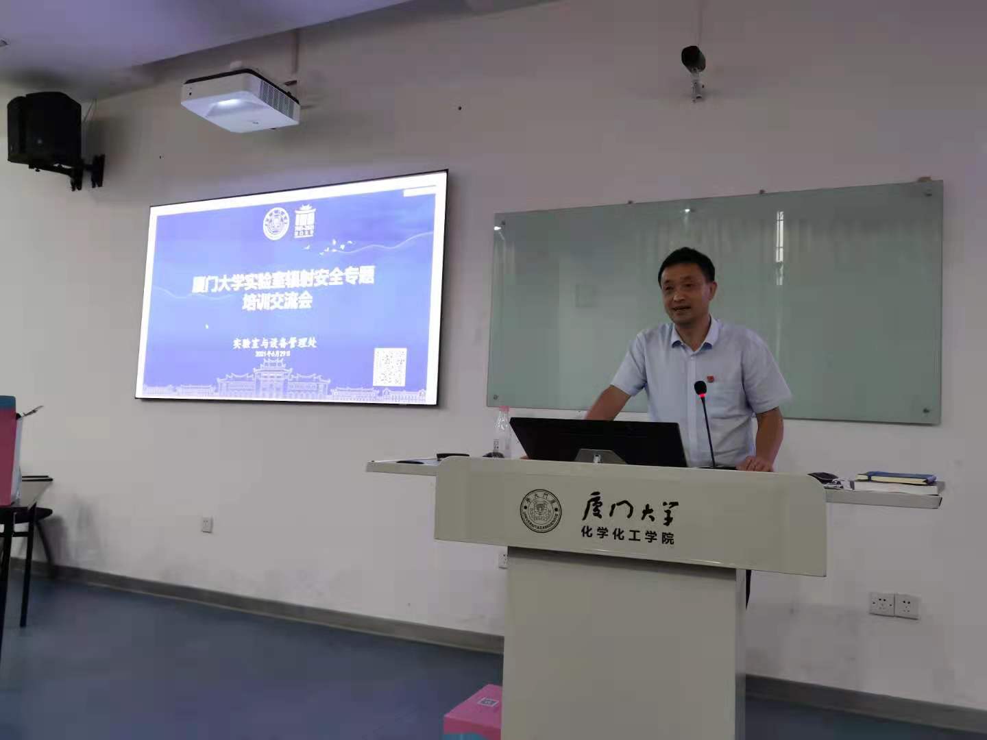 思明区生态环境局、实验室与设备管理处、资产与后勤事务管理处,涉及辐射工作学院的实验室秘书、实验室相关管理人员、操作人员参加了培训。