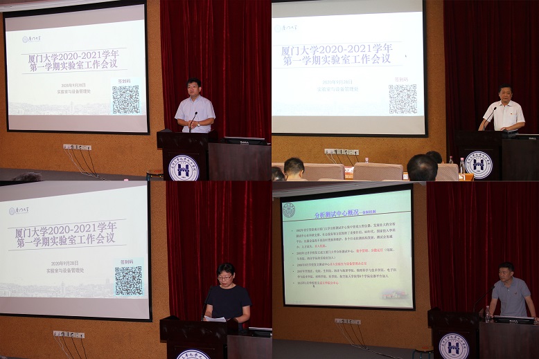 为推进新学期学校实验室管理工作有序发展,2020年9月28日在化学报告厅召开“厦门大学2020-2021学年第一学期实验室工作会议”,江云宝副校长出席会议并对新学期实验室管理工作作出指示,学校实验室与设备管理处施芝元处长对学校实验室管理工作做总结部署,陈晓兰副处长主持会议,学校分析测试中心贲毅副主任介绍了分析测试业务工作。