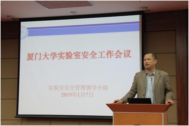 为贯彻落实各级主管部门关于加强高等学校科研实验室安全工作的系列文件精神,传达《教育部办公厅关于立即开展实验室安全检查的紧急通知》(教发厅函〔 2018 〕216 号)和 “全国高等学校实验室安全工作视频会议”精神, 2019年1月7日下午,学校召开实验室安全工作大会,校党委副书记林东伟,副校长江云宝出席会议并讲话。