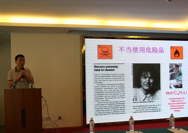 培训会邀请全国高校实验室工作研究会副秘书长、天津大学国有资产与设备管理处处长张社荣教授,厦门大学化学化工学院杨士烑教授分别讲授实验室安全文化建设、高校实验室化学事故的风险评估和如何应对新形势下的实验室安全管理等相关内容。张社荣教授为参训学员作了题为《创新•积累•升华 打造实验室安全文化,提升实验室安全水平》的专题讲座。张社荣教授通过精神文化、物质文化、制度文化、信息文化与人文需求文化等五个视角,从宏观管理的角度系统地介绍了天津大学在实验室安全文化建设与安全内涵提升的先进做法,成功地将实验室安全管理变被动为主动。杨士烑教授根据当前国内高校实验室面临的安全管理形势,援引了大量高校实验室安全事故案例,并结合本人在实验室的安全管理经验与体会,为参训学员作了题为《化学事故的风险评估和应对》的专题讲座,杨士烑教授着眼于具体的实验室安全操作实务,对实验室安全规范管理具有很好的借鉴意义。
