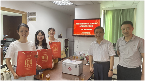 2022年7月4日上午,厦门大学实验室与设备管理处在处会议室组织召开了一场别开生面的师生座谈会,为3位西部支教和西部计划志愿者同学即将赴隆德县参与食品药品检验检测工作壮行。