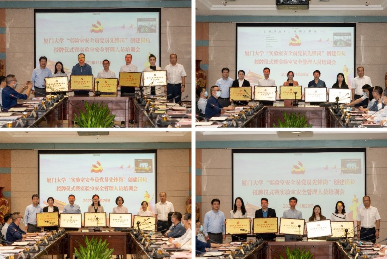 会上,孙理代表中共厦门大学委员会组织部/党的建设工作办公室宣读《关于公布厦门大学“实验室安全员党员先锋岗”创建岗位名单的通知》。林东伟、江云宝为首批入选的20个创建岗位授牌。
