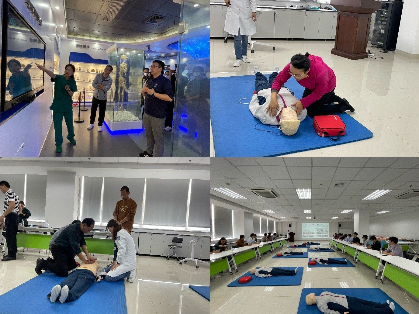 参观结束后,厦门大学附属翔安医院张莉莉主任为大家现场授课,详细介绍了心肺复苏“CABD”四个基本措施,并通过示范操作、视频观摩及双方现场交流、实战演练等方式,使参训人员基本掌握了应急救护、救援理论知识。