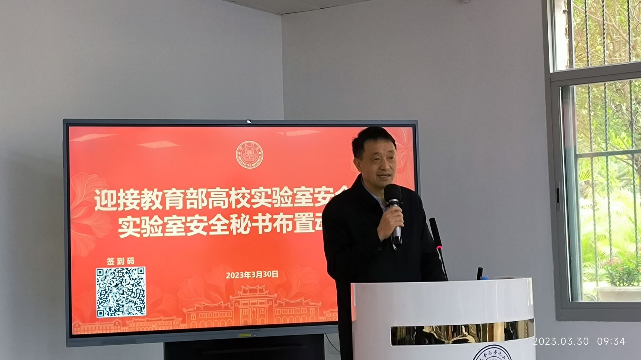 为做好教育部实验室安全检查迎检工作,3月30日上午,学校召开迎接教育部实验室安全检查实验室安全秘书布置动员会,实验室与设备管理处副处长张昌胜、校实验室安全卫生督导组组长宋思扬、各学院(研究院)实验室安全秘书与实验室与设备管理处相关人员参加会议。会议由张昌胜副处长主持。