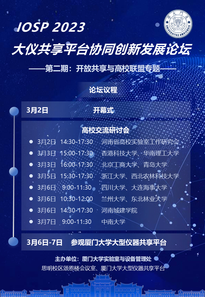 2.论坛地点:思明校区颂恩楼会议室、厦门大学大型仪器共享平台。
